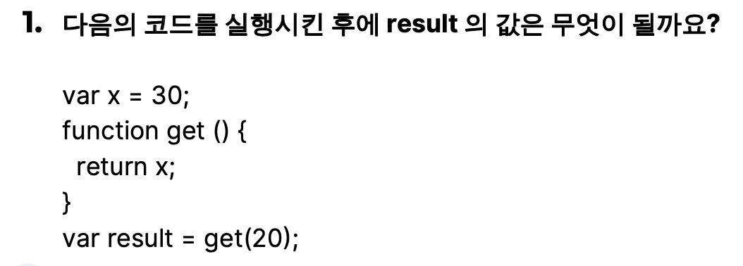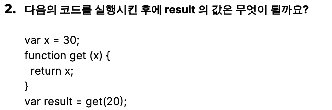 result값은 get(20)이다. 함수 get()은 매개변수를 받지 않기에 20과는 상관 없이 x 값을 리턴한다.