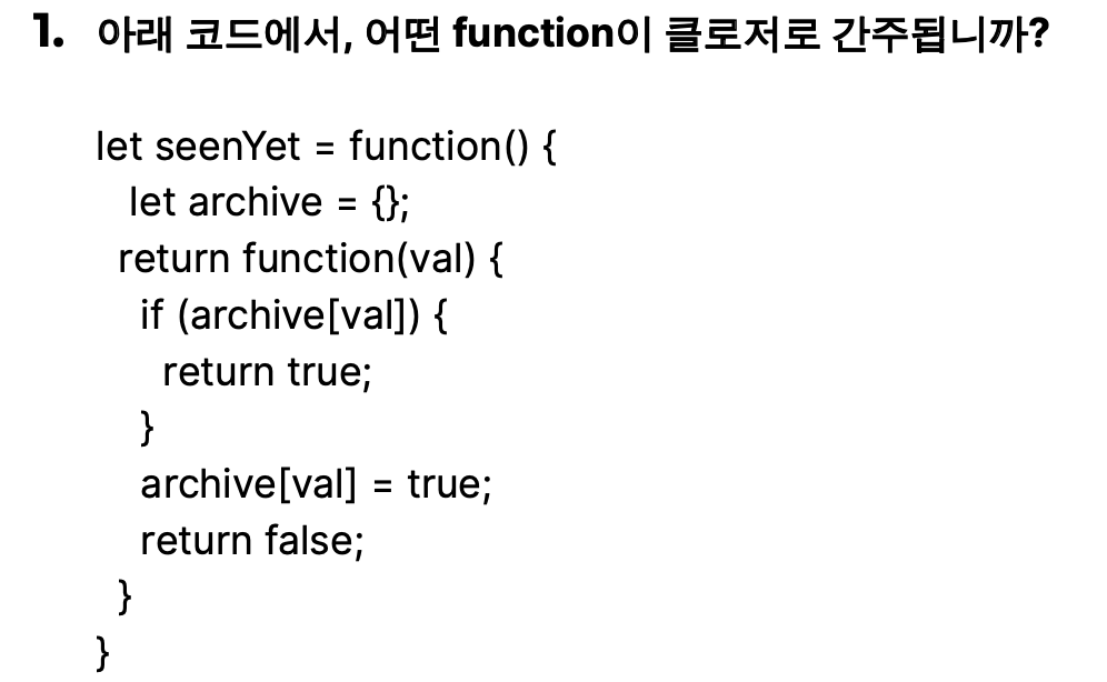 외부 함수는 seenYet 내부 함수는 익명의 return하고 있는 함수 이다.